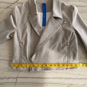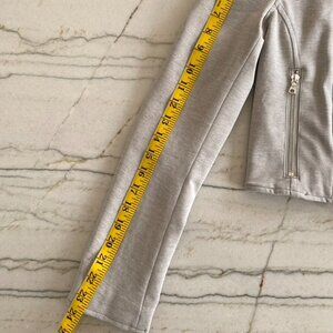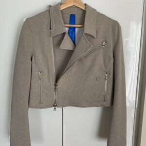 KIT AND ACE Triumph Moto style Crop Jacket Like new condition. Light Grey, with light blue insets on back from shoulder to arm pit. Size 4, lined. 50% Tencel Lyocell, 44% Polyamide, 4% Elastane, 2% Cashmere Machine Washable Please see photos for measurements. Dog friendly house--a dog doesn't live here but visits often.