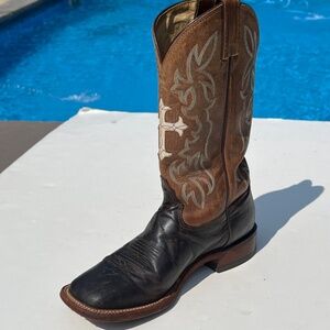 Tony Lama Women's San Saba Western Boot with Cross Inlay (Black, Brown and white)