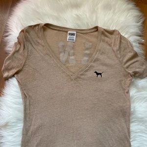 Super cute PINK by Victoria Secret V-Crew Neck Shirt Tan Color - light weight and very thin and a little sheer