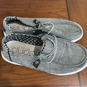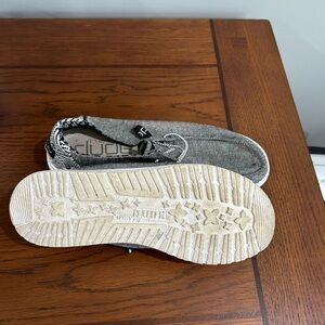 Women’s hey dude, shoes, gray black color only one three maybe four times. Good condition no rips or tears.