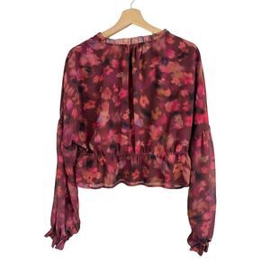 Steve Madden Women's Floral Chiffon Cropped Blouse V-Neck Long Sleeve M