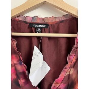 The Steve Madden Women's Multicolor Cropped Blouse is your go-to for effortless style and versatility. Crafted from lightweight chiffon, this floral blouse features a flattering V-neckline, long fitted sleeves, and charming accents like buttons, ruffles, and smocking. Perfect for casual outings or party/cocktail events, it pairs beautifully with jeans or skirts for a chic look. Ideal for spring and summer, this machine-washable blouse ensures you stay comfortable and stylish. New with tags (NWT). Minor thread pull in the back on one spot, not really noticeable but refer to pictures please.