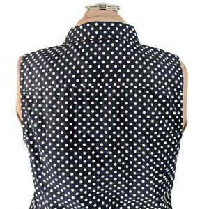 Cute Tommy Hilfiger navy blue sleeveless button front top with white polka dots.