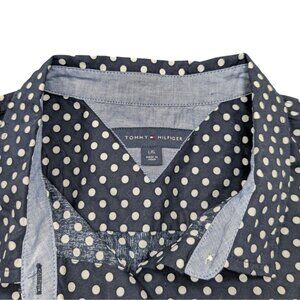 Tommy Hilfiger Large Blue & While Polka Dot Sleeveless Button Blouse