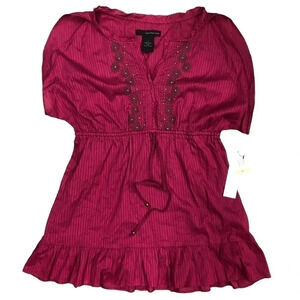 NWT THML Short Sleeve Heart Sweater Top Womens XS Pink Orange Valenti…