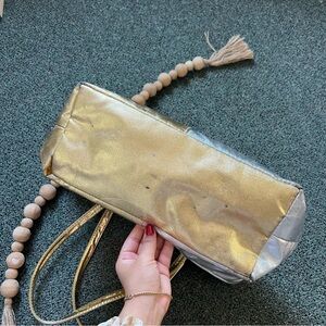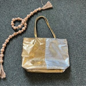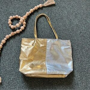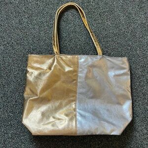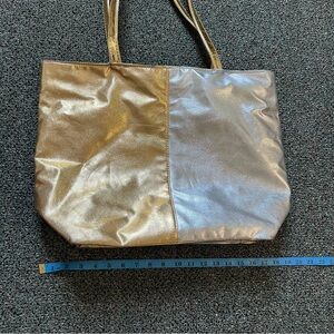 Color-block Shiny Metallic Silver & Gold Medium Large Tote Bag Pockets Laptop