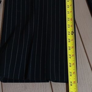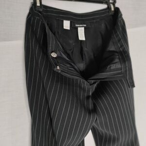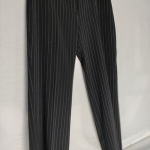 Woman black pinstripe pants made by Jones New York size 10 inner lining 98% polyester dry clean only front zipper
