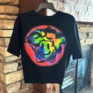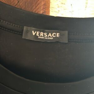 Versace Black T-Shirt, on the back of the t-shirt there is a graphic representing the famous Versace jellyfish. Gathered t-shirt with pin