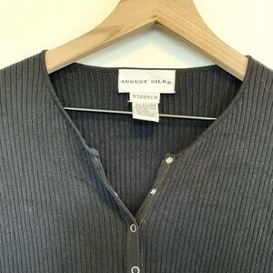 AUGUST SILK Ribbed Cardigan Black Women's Size L Silk Blend Whimsigoth Alt Girl