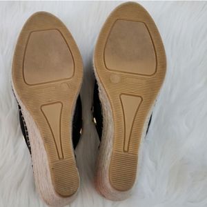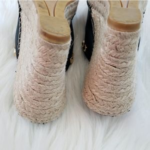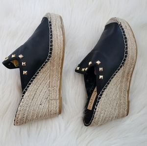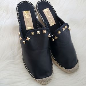 EUC Vidorreta Black Leather Studded Wedge Espadrilles Mules.