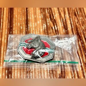 Siskiyou Horse Enamel Belt Buckle, F-7 , Red Green Metal 3D, made in USA 1993