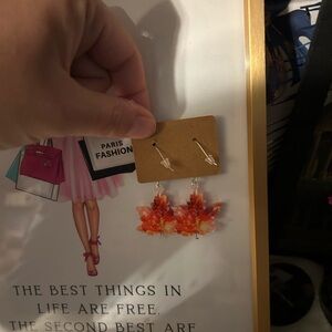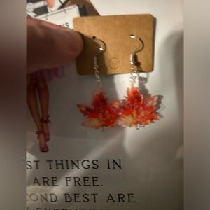🍁 Fall Acrylic Maple Leaf Earrings. Cute and seasonal dangly earrings. Image is on both sides.