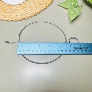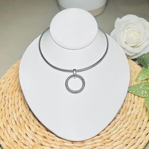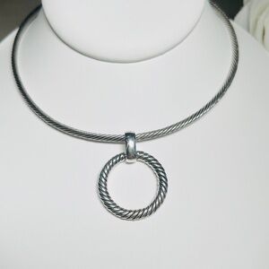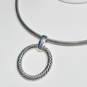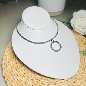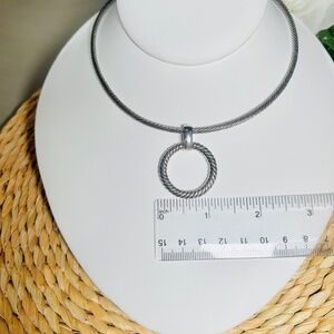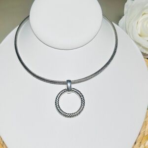 Vintage Talbots Silver Tone Twisted Pattern Wire Choker Necklace Circle Pendant