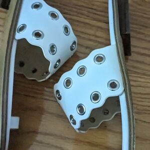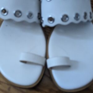 Womens Michael Kors Patty Flat Toe Ring Slip On Sandals, Optic White 8. Used. See pictures for details.