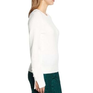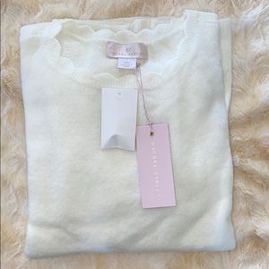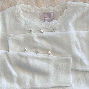 Cozy meets sweet with this soft sweater crafted with dainty scallops at the neckline and slit cuffs topped with a trio of pearly beads.