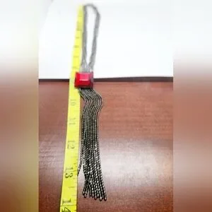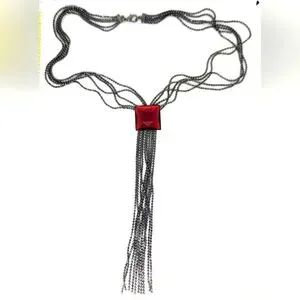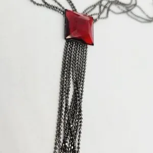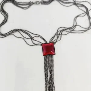 Vintage Gunmetal Ball Chain Multi Strand Y Drop Ruby Red Stone Goth Necklace