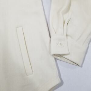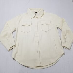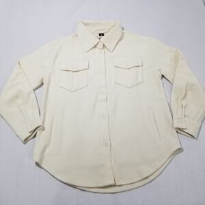 - Women’s Size Medium - Retail: $240 - Extreme warmth - Not just cute, functional & durable - Maintains insulation when wet - Breathable & moisture wicking - Full movement stretch - 2 hand warmer pockets - Ultra soft feel -- you won't believe this is wool! - Loose oversized fit, plently of room to layer - Chest button pockets - Classic shirt jac style - Tested & perfected for an entire year, the BEST fitting shacket on the market - Color: Sweet Cream- Relaxed / Oversized Fit THIS IS A JACKET & MEANT TO BE AN OVERSIZED FIT We recommend buying your normal size if you will be wearing as a jacket or outer layer and layering underneath - Extra button included in pocket