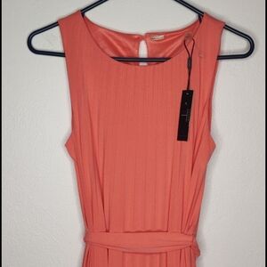NWT T Tahari Dress in coral color. Comes with matching belt. Size S