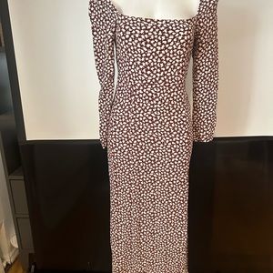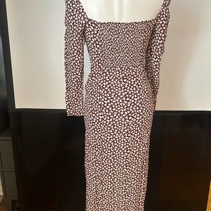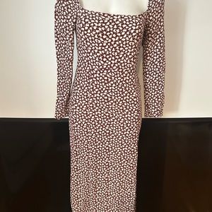 RIXO Hattie Floral Printed Square Neck Midi Dress