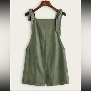 Tie Knot Strap Overall Shorts Pocket Jumpsuit Army Green