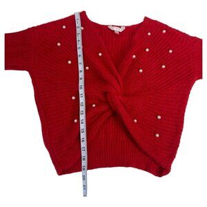 NOBO No Boundaries Women SZ M (7-9) Red Twisted Pearl Ribbed Crop Sweaters