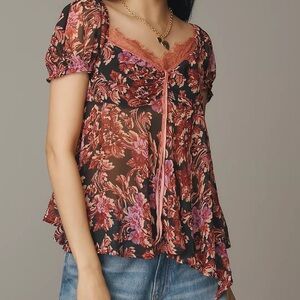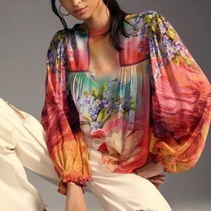 NWT. Kate Quinn women’s short sleeve scoop neck gathered dress w/ pockets in neutral highland cow print. 100% organic cotton. Size XS.