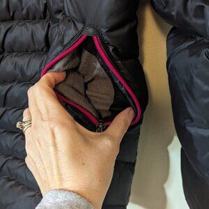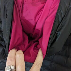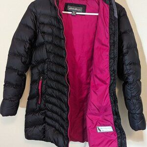 Eddie Bauer Down Long Tunic Length Puffer Parka Coat Black Fushcia Girls L 14-16
