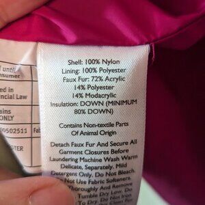 This Eddie Bauer parka is the perfect addition to any girl's wardrobe. The long tunic length coat is made with a quilted nylon outer shell and insulated with down for warmth during the fall, winter, and spring seasons. The black coat features contrasting fuchsia accents, a full zip closure, and a hood for added protection from the weather. The coat also has zipped pockets for storing personal items and is machine washable for easy care. The parka is suitable for a variety of occasions, including travel, activewear, party, casual, and formal events. It comes in size 14-16 and has a classic fit. The coat features a variety of themes, including nature, USA, Christmas, princess, colorful, goddess, travel & places, city, classic, preppy, ski, school, roses, rainbow, snowflake, snowboarding, outdoor, and shiny. It is perfect for activities such as walking, school, iceskating, skiing, snowboarding, and hiking.