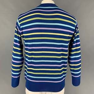 GENE MEYER Blue Yellow Stripe Cotton Blend Crew-Neck Pullover