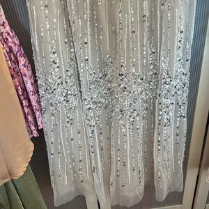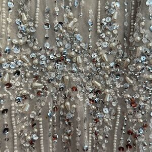 Brand new stunning, Adriana, Papel beaded caplet gown and ivory biscotti.