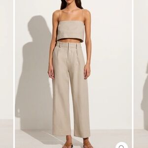 FAITHFULL THE BRAND NEW Ida Linen Wide Leg Pants Natural 6 M