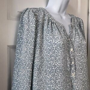 Loft Floral Blouse. Buttons on the front go down about half way. Elastic on the cuffs of the sleeves. Smoke free, pet free home.