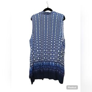 Sleeveless size 22W overpiece by Ruby Rd. has a beautiful blue pattern, with a ombre, dip dye finish at the bottom.