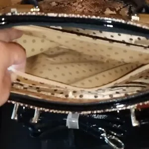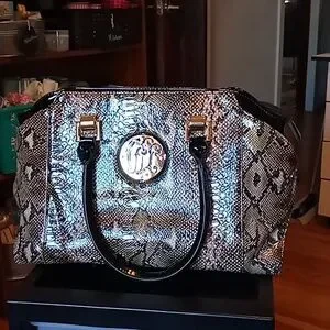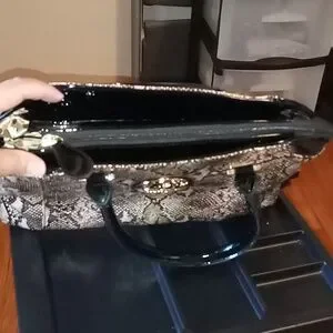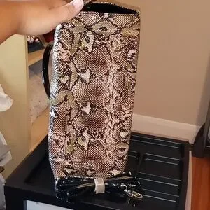 women's accessory bag/purse snake skin pattern black cream green , fashionable bag/purse. new never used but no tags.
