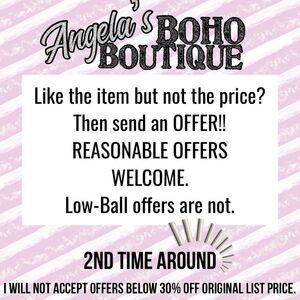 All Boho Boutique items are steamed to remove wrinkles and odors and kept in a smoke-free, cat-friendly home.