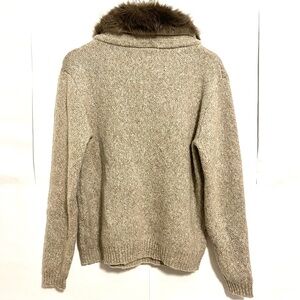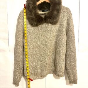 Here is a nice taupe color sweater with the mocha brown faux fur collar ready for your fall and winter wardrobe