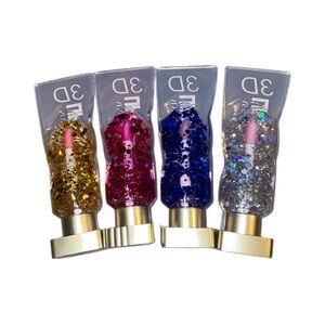 New set of 4 glitter 3D hard plastic container lip gloss small size.
