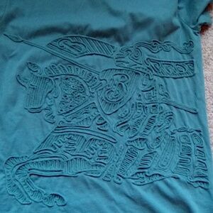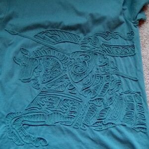 excellent condition, color is between a blueish-green, crewneck, knight on horse is raised details. Burberry, very rare and hard to find top. sz M