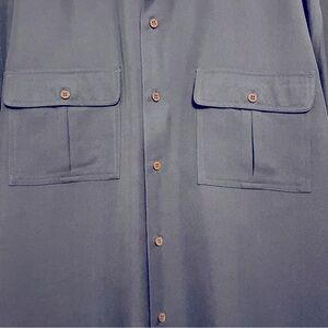 This men’s button up shirt has two front pockets and side slits for sleek hemline flow