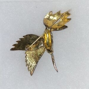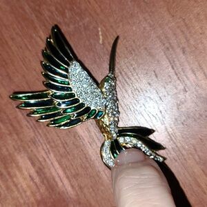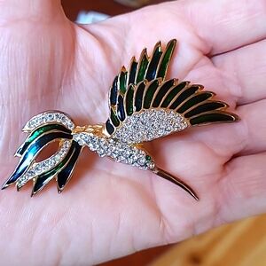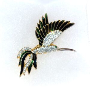 Vintage Brooch Hummingbird Fashion Jewelry Green Enamel with Gold & Rhinestones