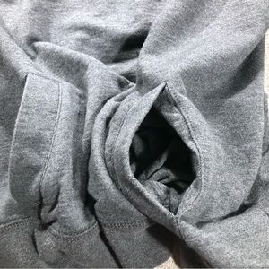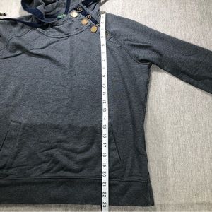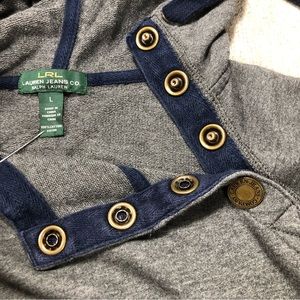 Lauren Jeans Co. LRL Ralph Lauren. Size large. Gently worn. Drawstring on hoodie. Side snap closure. Kangaroo pockets. Gray with dark blue accents.