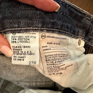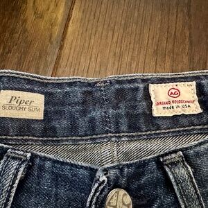 AG Adriano Goldschmied Piper Slouchy Slim Jeans Size 27 Patchwork detail on upper right leg Super soft 75% cotton/25% Lyocell Gently worn - no defects Smoke free home Inseam = 34" Front Rise = 9"