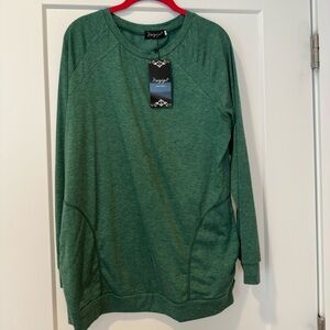 Black with very strong elastic and velcro strap. black lace over beige front pockets. There are 3 pockets in the front for easy carry. Hip measurements; 42-44 inches.