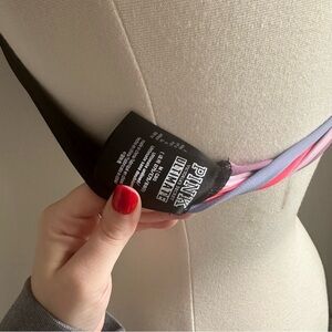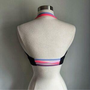 Victoria’s Secret PINK Ultimate Unlined Halter Sports Bra. Medium. Black with pink purple and blue details. Logo on front. Excellent condition.