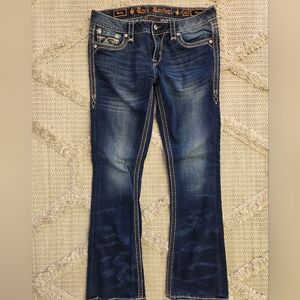 Cute Stretchy pull on style pant. Can make waist smaller w built in belt. Colors are vibrant. Waist approx 16 inches and Waist to hem Approx 34 inches. Please see pics for care and material content.