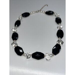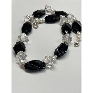 Lucas Lamenth black Faceted Glass Pearl Natural Stone Necklace LUC 925 AL4.2