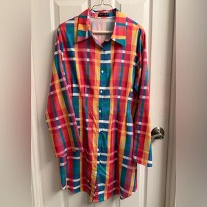 The bow can be tied or loose. Good condition. Fitted shape. Buttons on back of neck. Medium. Non smoker.