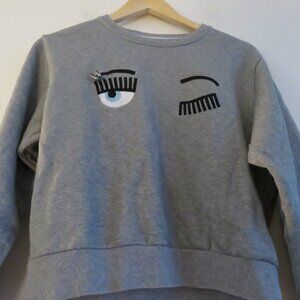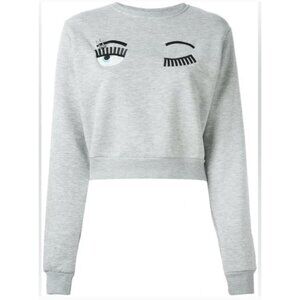 CHIARA FERRAGNI Pierced Wink Flirting Cropped Sweatshirt Heathered Gray - Size S