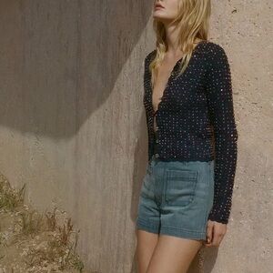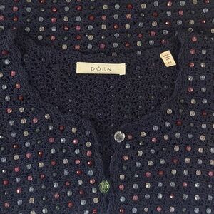 NWOT DÔEN Knit Cotton Navy Hand-Beaded Monterey Cardigan