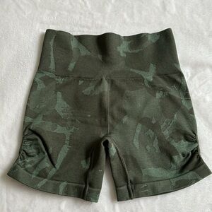 Gymshark shorts, size S, 4” inseam, scrunched legs, green camo, like new condition